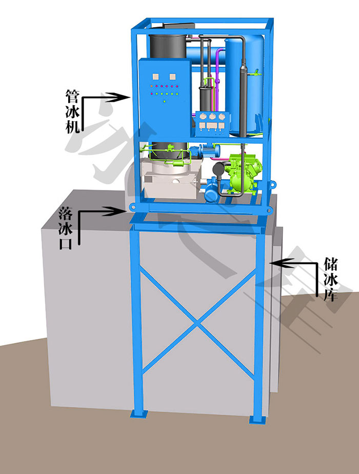 管冰機為制冰機的一種。因其冰塊形狀為中空管狀而得名,其內孔徑在5mm~15mm的圓柱形空心管狀冰,長度在25mm~42mm之間,有多種尺寸可供選擇,冰的外徑有:22、29、32、35mm等。管冰較厚且透明、美觀,儲存期長,不易融化,透氣性好。 日常適合食用調制、裝飾、食物冷藏保鮮等等。
